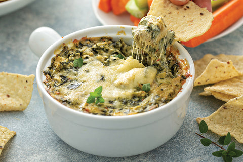 Perfect for tailgating season, or even the holidays, this Spinach Artichoke Dip is a traditional and delicious appetizer. Made with Nanny Moon’s Gouda, this dip is the perfect balance of creamy and flavorful.
